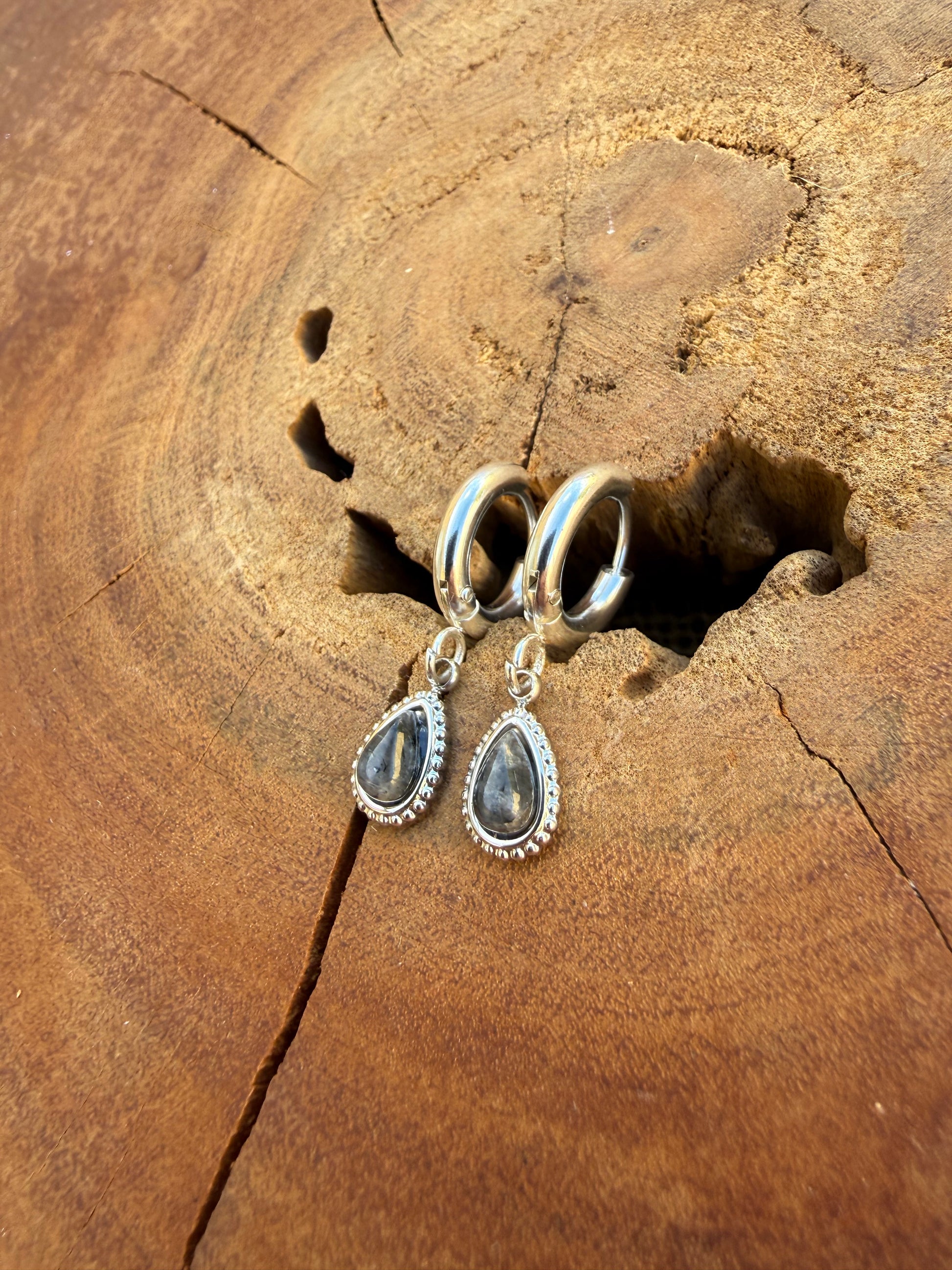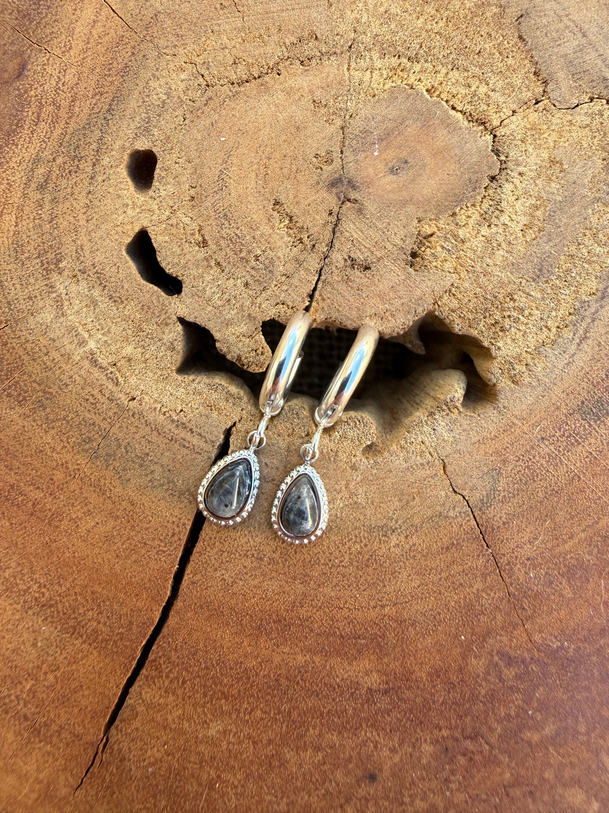 Larvikite Huggies - Silver